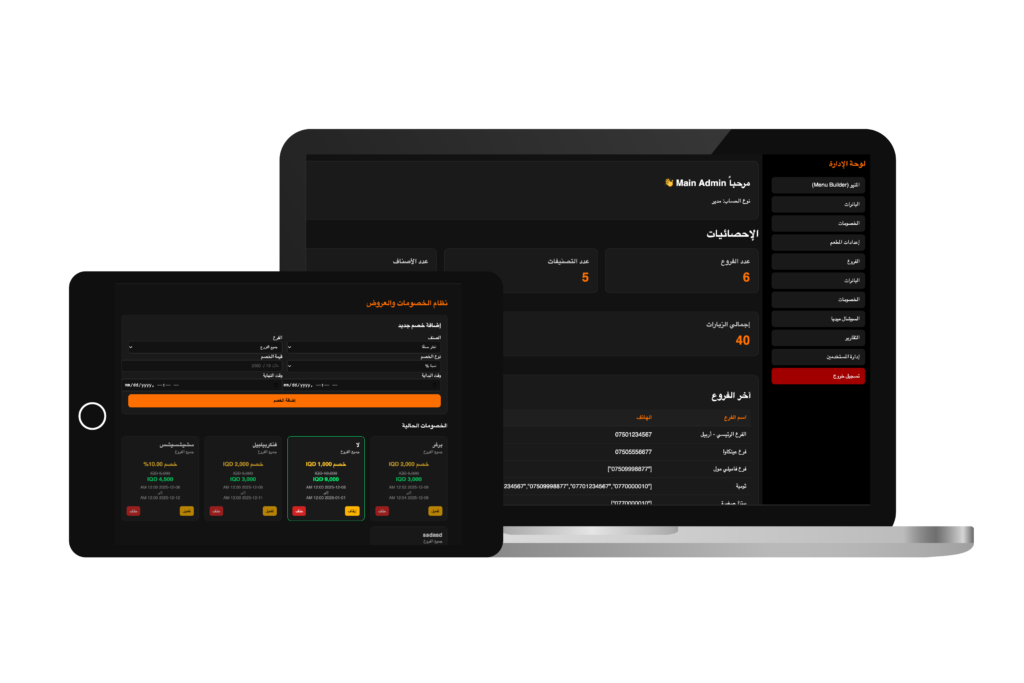 A detailed analytics dashboard provides insights into visits, most viewed items, branch performance, and customer behavior to support better decision-making.
